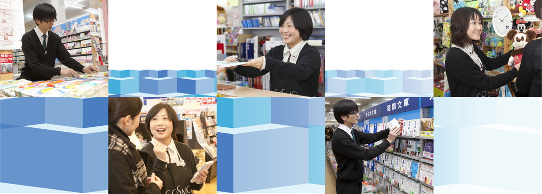 しかしながら近年、IT技術の発達により音楽・書籍・テレビゲームはインターネットでの購入が増えているのも事実です。ブックセンターコスモではこうした時代の流れを読み取りながら、取り扱い商材の比率を検討し文具・雑貨の品揃えを徐々にボリュームアップ。同時にインターネットでは購入しにくい第4・第5の商材を探し提供することで、お客様の利便性に大きく貢献していきたいという目標を掲げています。さらに、接客・サービス面においてもフェイスtoフェイスの温かい応対で、リアルショップならではの心の通うハートフルな満足をお届けしています。